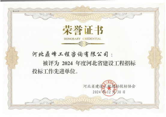 近日,河北鼎峰被河北省建設工程招標投標協會評為“2024年度河北省建設工程招標投標工作先進單位”,這已是鼎峰第六次獲此殊榮,在這個挑戰與機遇并存的時代,每一份榮譽都是對辛勤耕耘與不懈努力的最好見證。